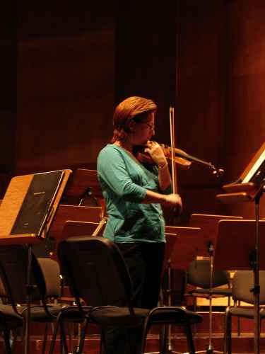 The day before recording, violinist Rebekah Binford rehearses alone in János Richter Hall. János Richter Hall, Győr, Hungary (20 September 2007) |